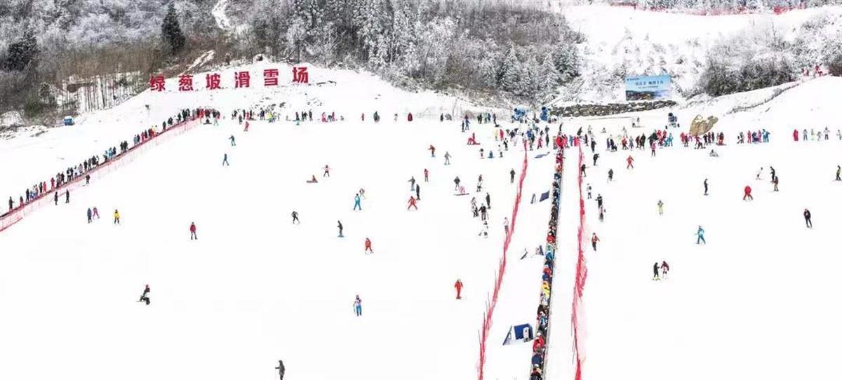 恩施绿葱坡滑雪场位于海拔1800米的“鄂西屋脊”恩施州巴东县绿葱坡镇。总雪道长度超过5公里,垂直落差达150米,每年的11月下旬到次年3月的最佳滑雪期,2019年12月建成,日均接待游客量3000人,成功举办2019年湖北省高山滑雪锦标赛,2021年首届巴东绿葱坡冰雪旅游节。
