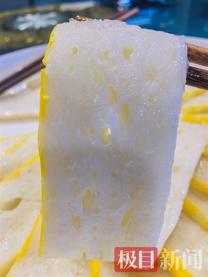 晶莹剔透的鱼糕上,蛋黄与鱼糕的深度“拥抱”,让亮黄色的鱼糕增加了一分层次。顺着糕体的切面看去,鲜香的鱼肉、土猪的肥膘经过纯手工的深度介入,再经过高温蒸汽的催化,形成了均匀分布的不规则气孔。