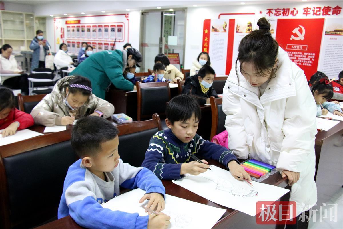 “小朋友们知道为什么要画年画吗?”“因为过年啦!”1月21日,武汉东湖高新区九峰街荣芳里社区的18名孩子聚到社区的青少年活动空间,在艺术老师的指导下,为即将到来的农历虎年春节画年画,画面上的主角,自然就是可爱的老虎卡通形象。而有的小朋友,也会画上自己喜欢的动画人物,然后添上老虎造型的服装。