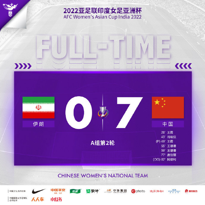 中新网客户端1月23日电 北京时间23日晚进行的2022年女足亚洲杯小组赛A组第2轮比赛中,凭借王霜、肖裕仪、王珊珊和唐佳丽的进球,中国女足7:0大胜伊朗女足,取得两连胜的同时锁定小组出线的名额。