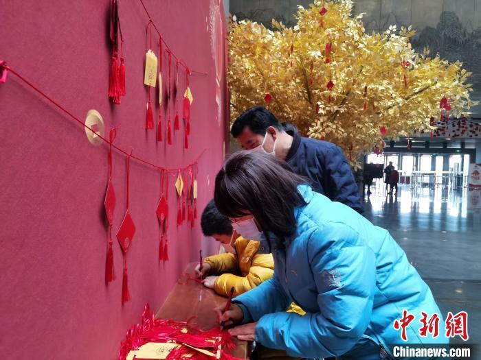 合肥市民在展览许愿墙前书写新年心愿。 张强 摄