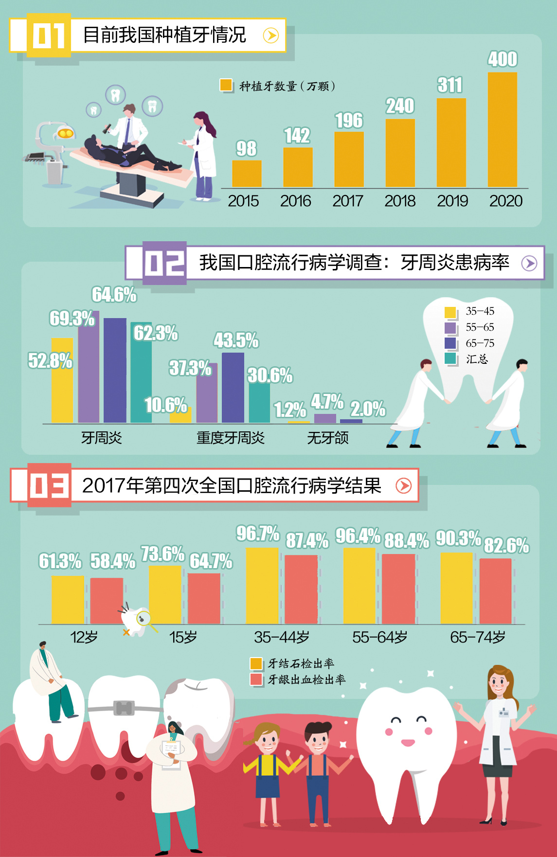 其实,晓晓的经历并非个例。80、90后继脱发问题频上热搜后,由于口腔问题导致的“掉牙”新闻也隔三差五地出现在人们的视野中。据第三次和第四次全国口腔流行病学调查结果显示,中青年(35-45岁)居民中牙结石、牙龈出血检出率甚至高于老年人群(65-74岁),口腔问题出现了年轻化趋势。