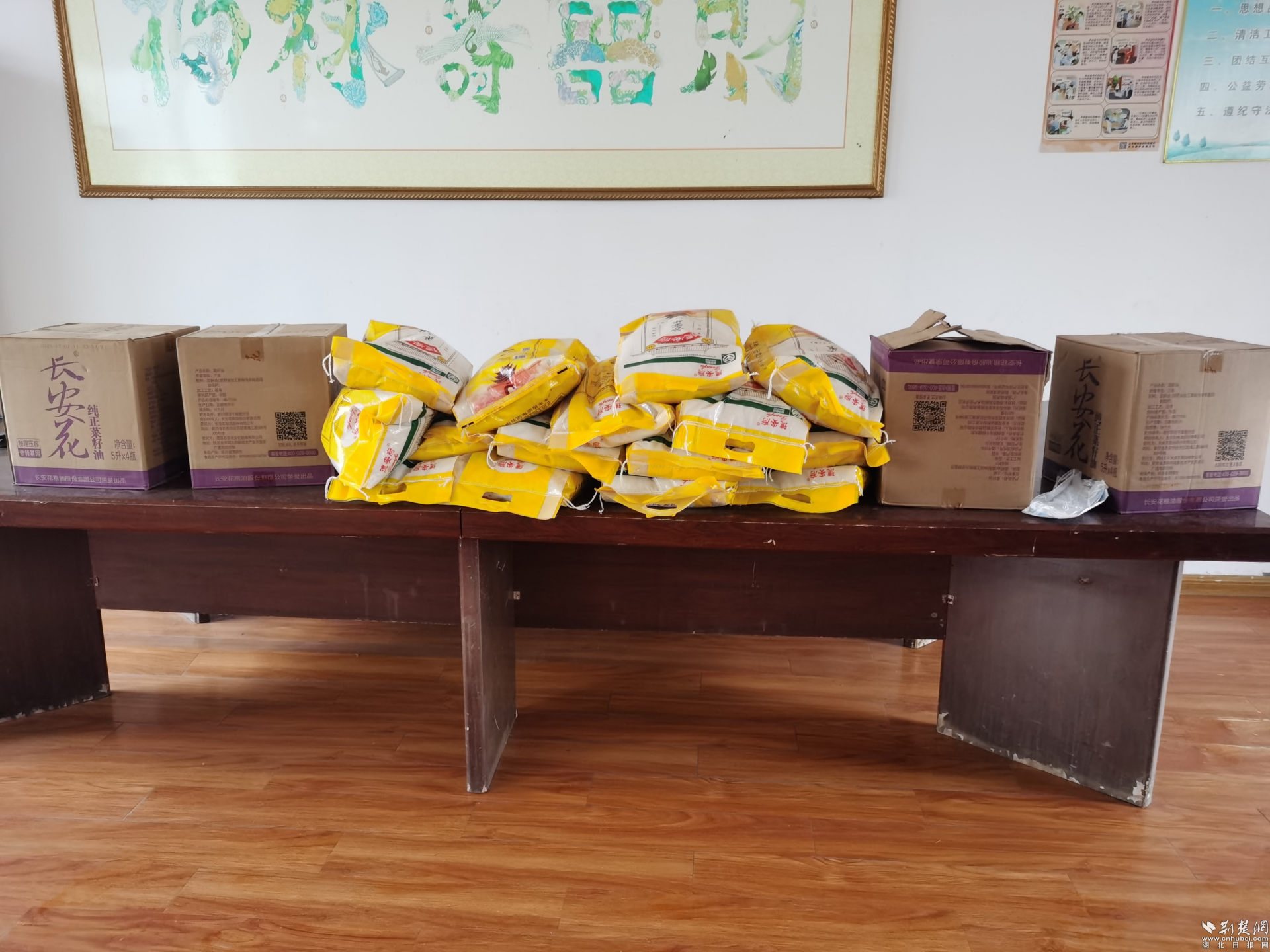 给老人送去大米食用油等生活物资。万喆 摄