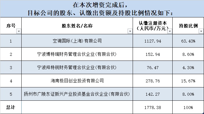 据协议信息,海南极目以9000万元购买空调国际转让的目标公司注册资本172.06万元、出资6000万元认购目标公司新增注册资本人民币106.70万元;扬州基金出资8000万元认购目标公司新增注册资本142.27万元;张永明、奥特佳等方作为埃泰斯的实际控制方,负有督促埃泰斯善加使用本次增资认购款、开展埃泰斯IPO准备工作、反腐败与反商业贿赂、保密、守法经营、与交易对方及其关联方在条件同等的条件下优先开展商业合作等事项的义务。