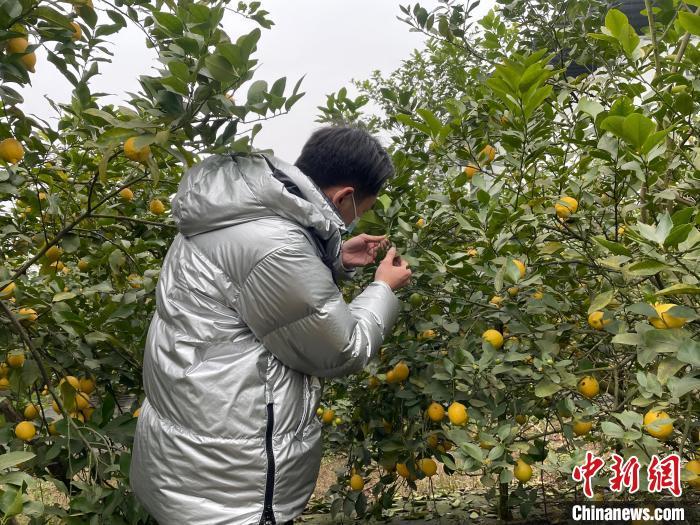 唐自尧查看柠檬树生长情况。 祝欢 摄