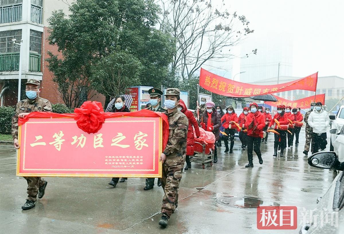 1月29号上午,咚咚锵、咚咚锵,报喜的锣鼓喧天在武汉市蔡甸区某小区现役军人叶威的父母家门前响起。