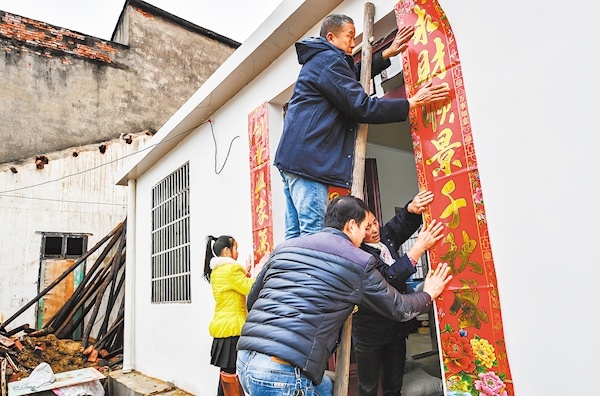 黄冈市浠水县:新家建在老房原址旁,三代人喜贴春联。