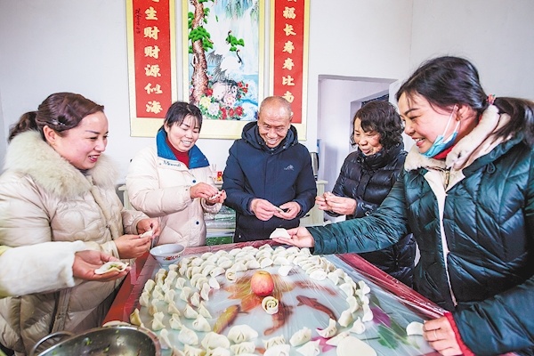 很快,家里又来了几个“女儿”,她们是市、区应急管理局和村里的女干部。洗手、挽袖、包饺子、摆笑脸造型……李孝初老人乐呵呵地在众“女儿”中间学着包饺子。