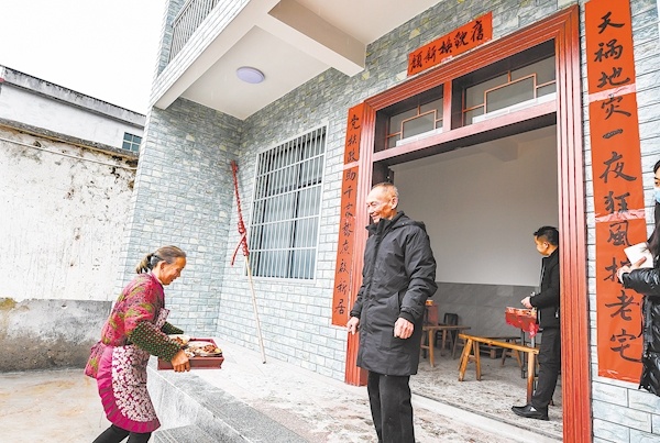“新房子有50多平方米,申请倒房重建资金3万元、民政救助给了7400元,两个女儿各出了6000元,农历八月初二开建,两个月房子就起来了,十月初二搬家!”李孝初笑着说,女儿们都来了,过年不孤单。