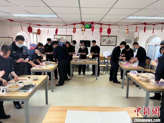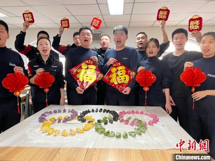 中新网北京2月1日电 (王海蛟)榨汁、和面、拌馅、擀皮......蓝、黄、黑、绿、红。1月31日除夕夜,北京铁路公安处北京站派出所食堂里,“主角”就是水饺,民警们举办了包饺子比赛。