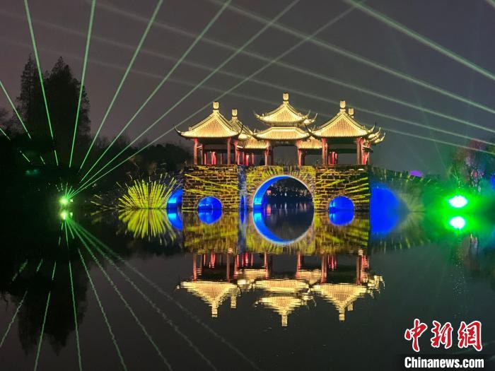 扬州瘦西湖文创演艺部部长杜诗汉说,本次推出的新春贺岁版夜游,在原先光影亮化基础上进行了优化和提升。尤其是在南门叶林区域的“诗路画语”环节,景区结合环境氛围,深耕唐诗主题,营造了一条融入诗人、诗词、光影和色彩的时空隧道,采用全息风扇和星空灯,为夜游景色增添了浪漫与人文的气息。