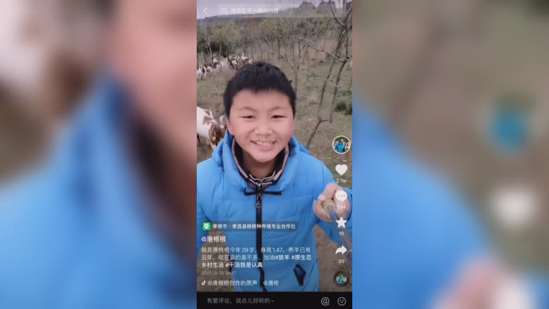今年30岁的唐根根,身高仅1.4米,因从小患有先天性肢体残疾,加上父亲体弱多病,全家只能依靠母亲一个人苦苦支撑,从记事起,贫困便一直伴随着他成长。2016年大学毕业后,找工作屡屡碰壁的他回到家乡,当起了羊倌。通过不断自学,摸索尝试,唐根根积累下不少养殖经验,家里的羊群由最初的百余只逐渐发展到600余只,养羊让他的家庭条件大为改善,年收入达到二三十万元以上,成为了全县自主脱贫的典范。成功脱贫后,他创办了根根种养殖合作社,无偿为其他农户提供技术,赠送怀孕母羊,带领周边十几户致富奔小康。