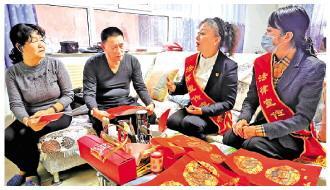 康妍宣和同事们一起,将带来的宪法、民法典读本及法治春联递到村民手中。随后,他们结合群众关心的借贷、婚姻、继承等话题,把法言法语变成大白话,用群众身边的事情举例,讲道理、说法理,讲解了民间借贷、离婚冷静期、夫妻共同债务等法律知识。