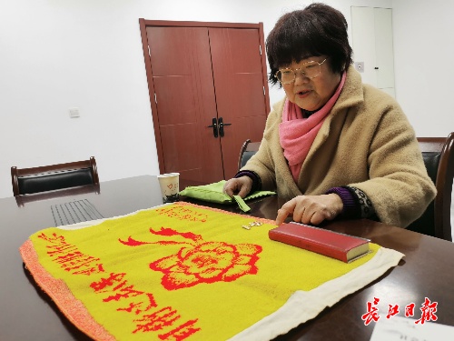 “忆峥嵘岁月”活动上,刘慧曾带着她参军时获得的纪念品枕巾和纪念章与大家一起分享故事。 长江日报见习记者秦璟 摄
