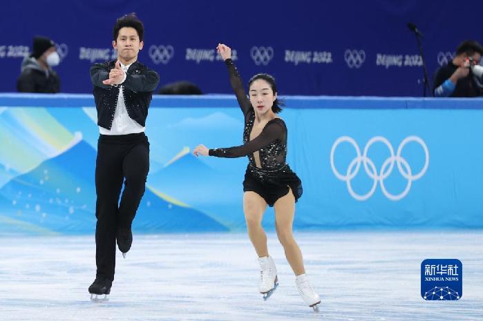 2月4日,中国双人滑选手隋文静(右)/韩聪在赛前训练中。新华社记者 张玉薇 摄