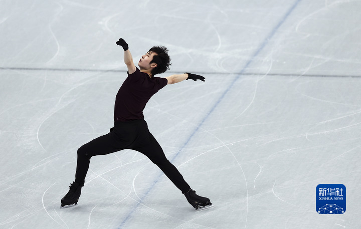 1月31日,中国花样滑冰队在首都体育馆训练备战北京冬奥会,中国男子单人滑选手金博洋在训练中。新华社记者 曹灿 摄