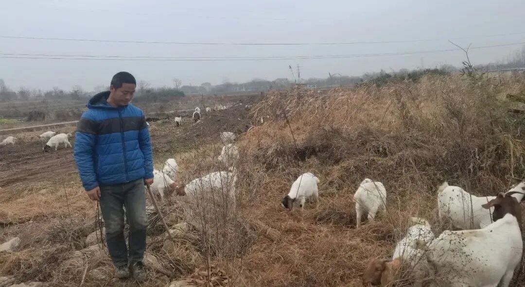 农历小年的前一天,家家户户都忙着置办年货,迎接新年的到来。在新铺镇百草湖村张旗杆湾一处空置的菜地上,80后的“羊倌”张峰正带着他精心养殖的近80只波尔山羊啃食田埂边的枯草和落叶,霏霏细雨,冷冷寒风,对于已有二、三年养殖经验的张峰来说,似乎都不算什么。