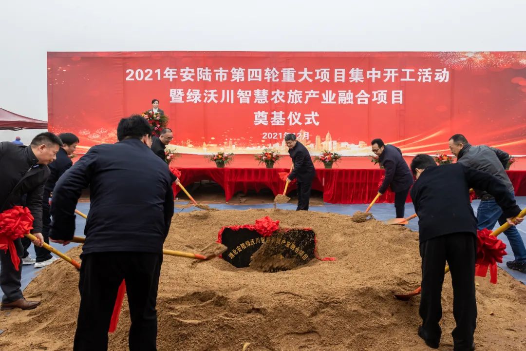 ▲ 2021年12月11日,安陆市2021年第四轮重大项目集中开工暨绿沃川智慧农旅产业融合项目奠基仪式在李店镇杨棚村举行。绿沃川智慧农旅产业融合等15个重大项目集中开工,总投资47.84亿元