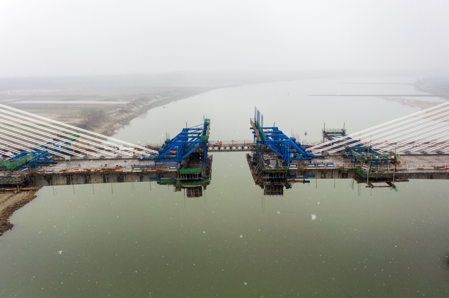 “28号墩已完成24对(14对斜拉索已全部完成),剩余1对;27号墩已完成22对(14对斜拉索已完成13对),剩余3对。全部完成后,大桥就可合龙,进行桥面铺装和附属设施安装。”潜江市交通运输局工作人员张承志告诉记者。