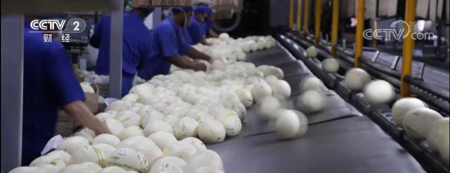 淡绿色、圆滚滚,这一个个甜瓜即将打包装载,漂洋过海来到中国的超市中。这种来自巴西东北部的甜瓜,根据它的形状和大小,巴西人给它起了一个特别的名字——恐龙蛋。 巴西东北部阳光充足,为甜瓜带来了香甜的口感,同时可能是因为靠近海边,空气湿润,使得甜瓜水分充足。