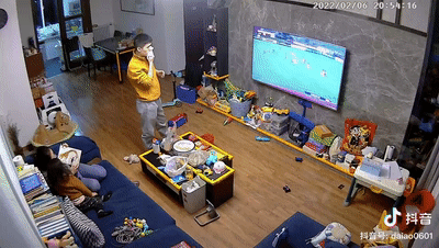 北京时间2月6日晚8时54分许,中国女足亚洲杯夺冠,坐在电视机观看直播的徐州女子戴傲激动起跳,手舞足蹈高呼庆祝,吓哭了坐在一旁的孩子,戴傲家中的监控记录下这一幕,她将视频上传至抖音,意外引发网友关注。