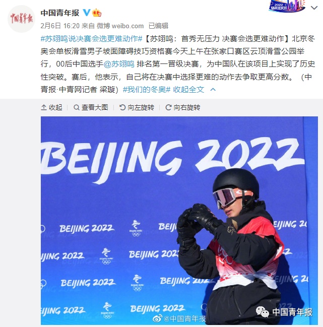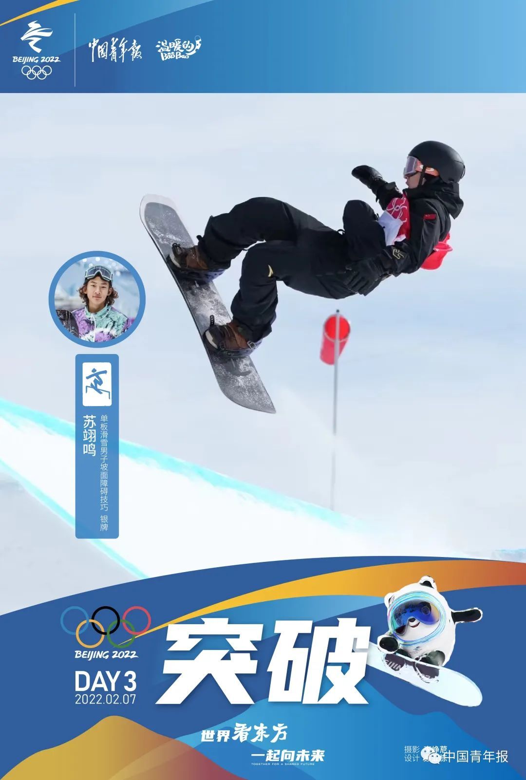 刚刚结束的冬奥会单板滑雪男子坡面障碍技巧决赛中,17岁小将苏翊鸣在“雪长城”造型的场地上不断挑战高难度,翻出1800,以一枚银牌创造了中国队在该项目上的冬奥历史最佳成绩。