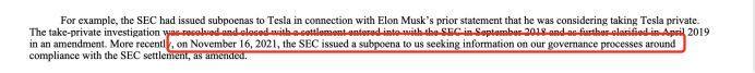 此外,该份年报K10文件还显示,特斯拉CEO马斯克又被SEC盯上了。