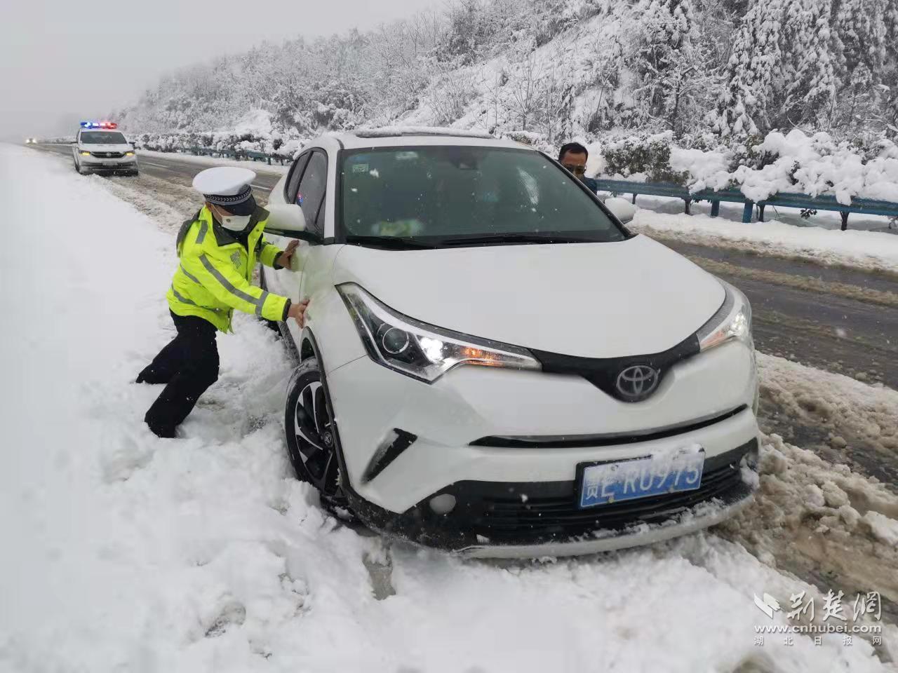 6日晚,第一轮风雪突袭鄂西北,沪渝高速白果坝附近路侧积雪近20公分,暴雪致使沪渝高速公路鄂渝省际重庆段路面打滑,车辆通行受阻,省外车辆进不来,本省车辆出不去,在沪渝高速重庆石柱境内,湖北利川白羊塘双向形成约15公里的滞留车流。为保障沪渝高速公路大动脉畅通,人民群众出行平安。两省高警、养护、路政部门按照“警车开道、养护撒布、重车碾压、施救清障”的模式,成功将15公里积压车辆安全带至两省界。