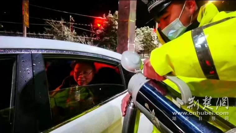 在福银高速丹江口段,张家院大桥出现结冰情况,正值深夜,如不及时处理,极易引发多车连环事故,十堰大队立即协调养护部门开展铲冰除雪,民警苏宏、刘钊、陈圆圆、熊琪在结冰路段前方设置警戒区域连续值守近6个小时,逐车敲窗、逐一提醒过往车辆降速慢行。