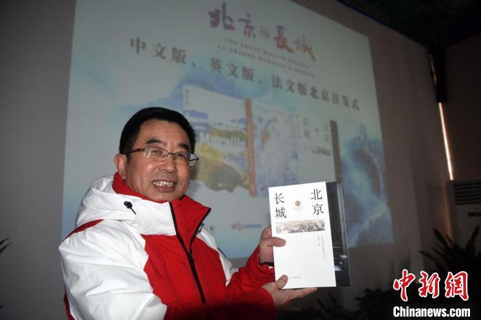 《北京的长城》主编、北京国际城市发展研究院院长连玉明在首发式上展示新书。 中新社记者 孙自法 摄