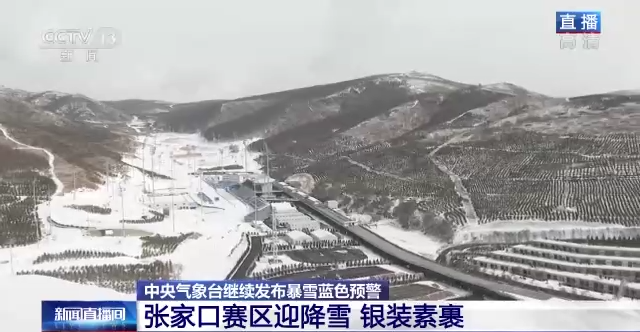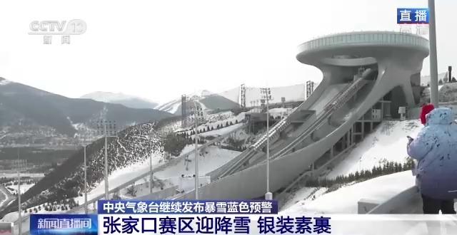 张家口赛区迎降雪,银装素裹,被白雪覆盖,但雪如意场馆的各项比赛没有受到影响。下午2点到晚上9点,会有北欧两项、男子个人大跳台官方训练,也会产生男子个人大跳台的金牌。