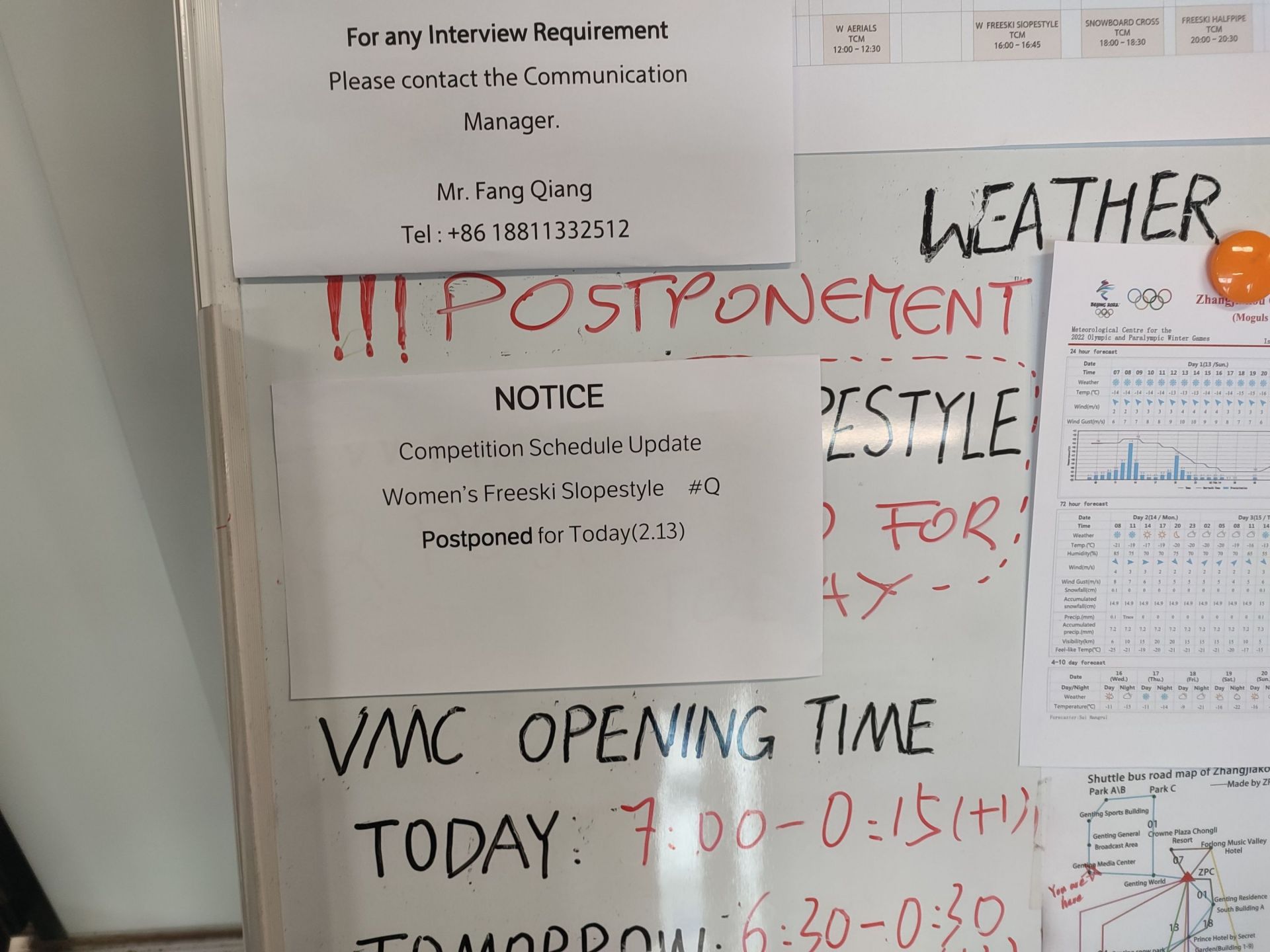 图是云顶滑雪公园媒体工作间官方公告板