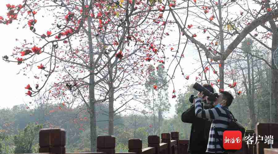 昌江木棉花绽放枝头,吸引八方来客。记者 刘洋 摄