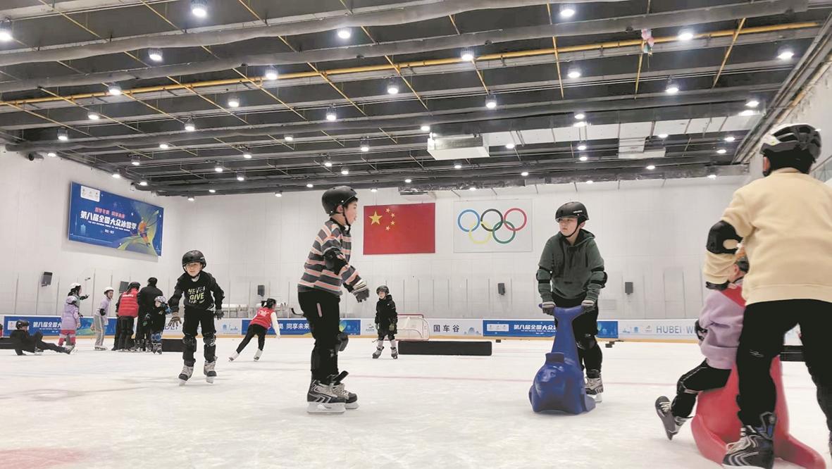 随着北京冬奥会的举行,武汉市民参与冰雪运动的热情高涨。寒冷冬季,冰上运动场馆反而成为武汉最“热”的地方。今年的江城,滑冰戏雪闹新春,兴起了春节市民玩乐新潮流。不少家长们也选择在这里“遛娃”。