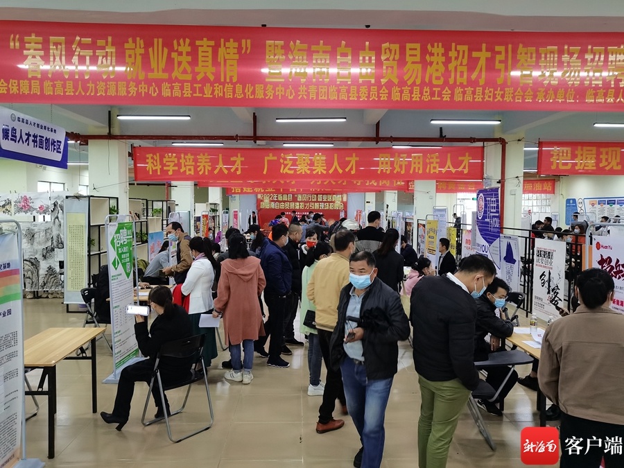 新海南客户端、南海网、南国都市报2月14日消息(记者林文泉 通讯员刘彬宇)14日,2022年临高县“春风行动 就业送真情”暨海南自由贸易港招才引智现场招聘会在该县人才创业孵化基地内举办,招聘会共邀请64家用人企业参加,提供招聘岗位人数共计2814人。