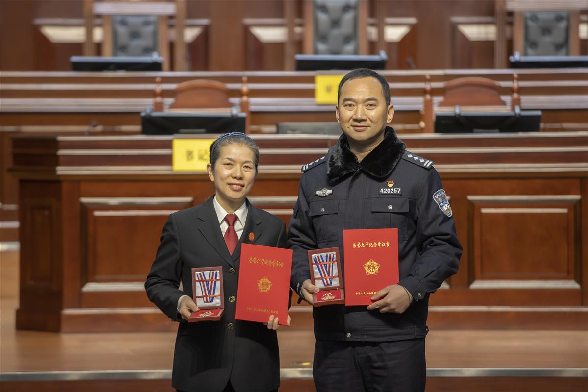 “我还很感激妻子三十年的陪伴。”东西湖区人民法院司法警察大队政委程俊激动地对极目新闻记者说。春节前,他和妻子夏芳荣获最高人民法院颁发的“荣誉天平奖章”。该奖章是最高人民法院颁发给为从事人民法院工作满30年,为人民法院工作作出贡献的法院干警的荣誉勋章。