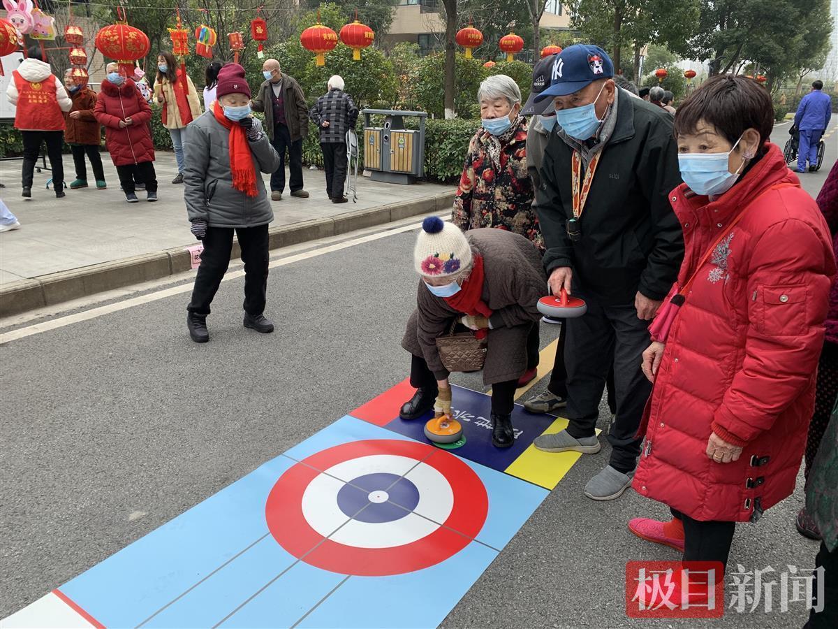 趣味非凡迎冬奥,共享盛世赞时代。当新年遇上冬奥,年味与赛事撞个满怀。捏面人师傅手里的“迷你冰墩墩”面人,成为了现场最火爆的体验项目,在艺人的巧手下,一个生动形象的“迷你冰墩墩”跃然于眼前。为了让大家体验冰雪运动的乐趣,现场还专门设置了陆地冰壶体验区。在志愿者的讲解下,大家学习了冰壶运动的基本知识、熟悉比赛规则、基本动作、得分技巧等。“一二三,推!”爷爷奶奶们同台竞技,欢乐运动畅享,为幸福新时代点赞。