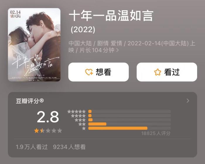 但《十年一品温如言》在豆瓣上仅有2.8分。有影评是这么写的:“现在的电影可真有意思,明明可以直接‘抢’,非要请你看电影。”道出了部分观众对该片的观感。