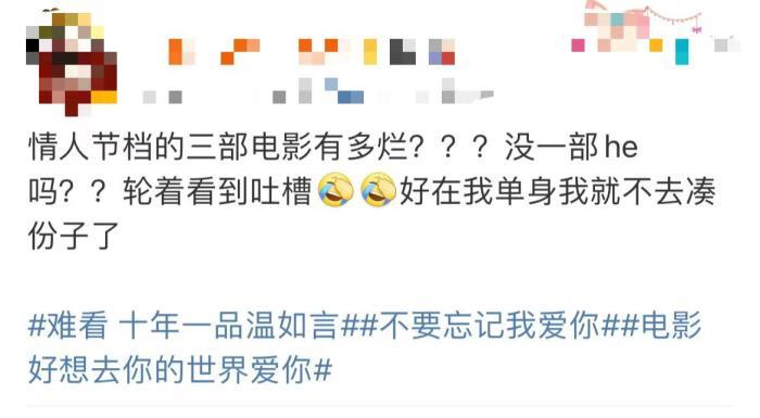 那,这些爱情片有这么多差评,是说明我们不需要这类型电影了吗?