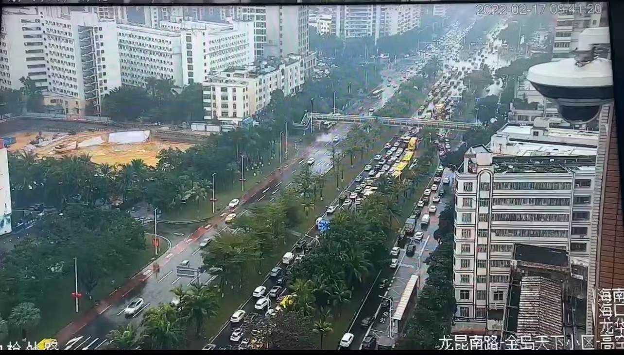龙昆南路上车流量很多。视频截图