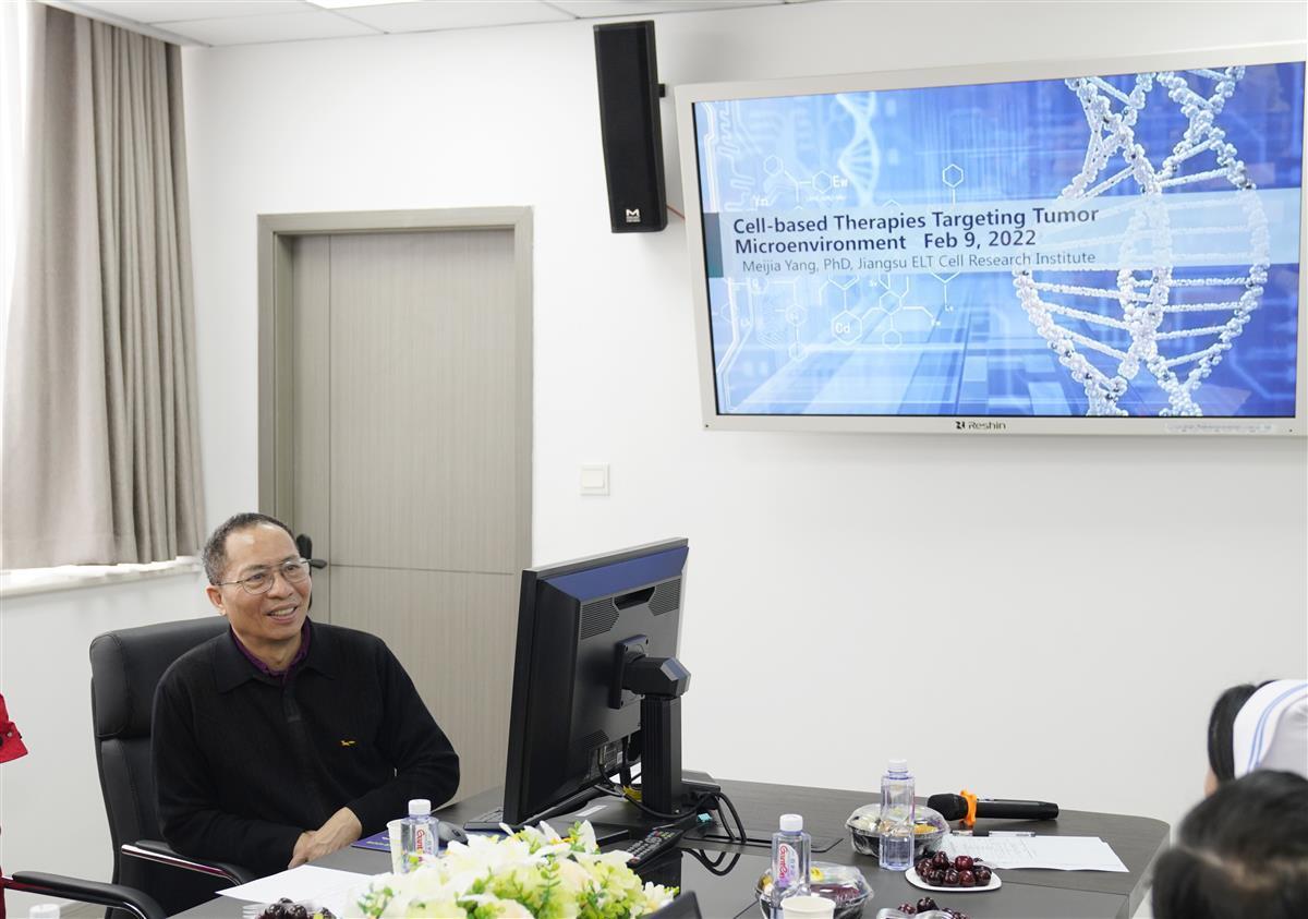 杨美家教授及其团队长期专注于肿瘤免疫细胞治疗的研究和转化,代表了当今国际该领域的最高水准。杨美家教授以“Cell-TherapiesTargetingTMEForCancerTreatment”为题做了研究项目报告,展示了其所在研究院和他本人在肿瘤细胞治疗方面的研究成果和该领域最新的发展动态,并引出了多方合作项目的热点话题。与会专家就合作项目中的诸多细节展开了热烈的讨论,并对各参与单位、各团队如何交叉融合,科学、规范地推进项目进程交换了意见,并最终达成共识。