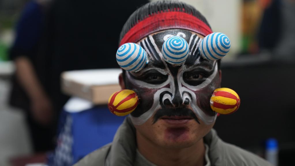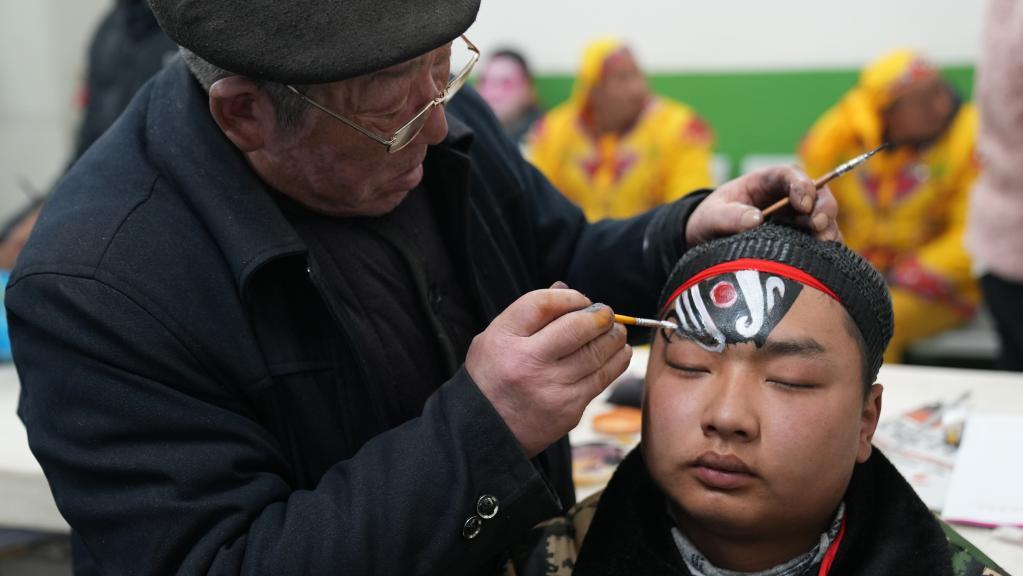 “陇州社火”艺人独创的疙瘩脸谱 新华社记者赵英博 摄