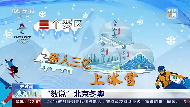 白岩松:这三个赛区是北京赛区,包括首钢首都体育馆,延庆赛区,还有张家口赛区,带动了三亿人上冰雪这个目标也已实现了,这是咱们申奥的时候就提出的一个目标。当然也盼望着三亿之后是五亿,是七亿,让每一个冬天中国只要有雪的地方都能成为网红打卡地,不仅上冰雪,更能爱冰雪运动,然后让爱冰雪运动成为一种家风。
