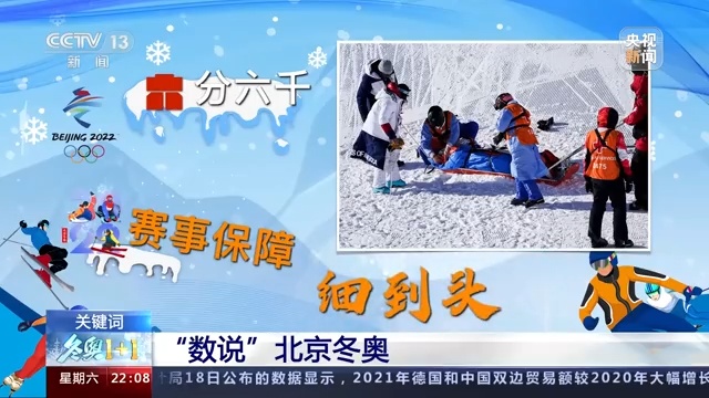 白岩松:“六分”指的是每场比赛从结束到颁奖,只给了六分钟的时间,但是各个保障的这种团队都非常好地完成了这样的一个任务,而六千指的是三个赛区一共有六千辆的服务用车,在5G和北斗的关照之下,所有的车都定位在15米之内,时间到达离开等等都是以秒来计算,这代表着整个赛事保障对细节的重视。