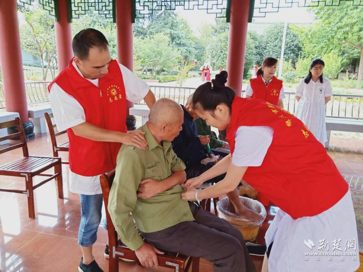 鄂州市优抚医院志愿者前往市光荣院开展“关爱抗战老兵”义诊活动。鄂州市优抚医院供图