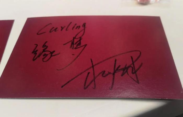 投“桃”报“礼”,餐饮副经理冯宾伟也收到了来自凯特的礼物——一条世界冰壶联合会领。