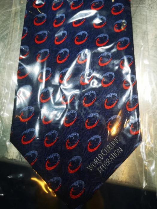 2月17日,凯特赠餐饮副经理冯宾伟世界冰壶联合会领带。