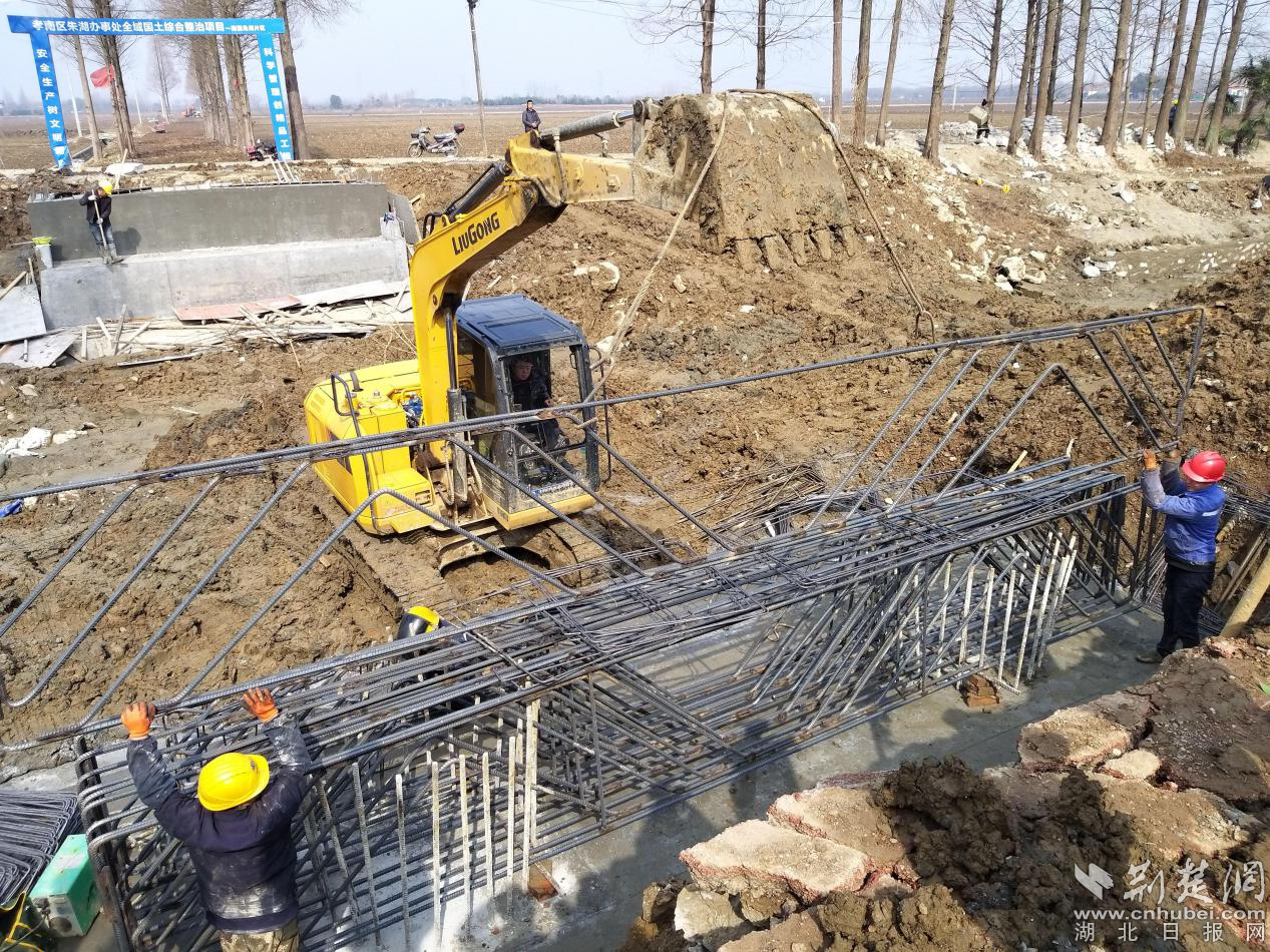 在汉川渠综合治理施工现场,由区环境保护分局承担的这条全长2.5公里渠系治理工地上,10多台专用机械、100多名工程技术人员、施工队伍和工程质量监理人员等从正月初三开始就陆续到岗到位。“我们要抢在春季降雨量较为集中的时间到来前,完成这项重要任务,为朱湖全域国土综合整治当好水畅其流、生态保护的先锋。”区生态环境保护分局局长周洁说,“尽管这段时间春寒料峭,但大家依然劲头十足。”