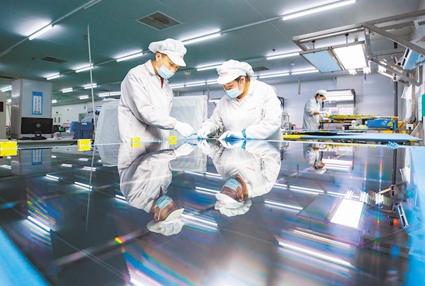 工人在黄石金能光伏有限公司智能化车间操作。(湖北日报全媒记者 薛婷 摄)