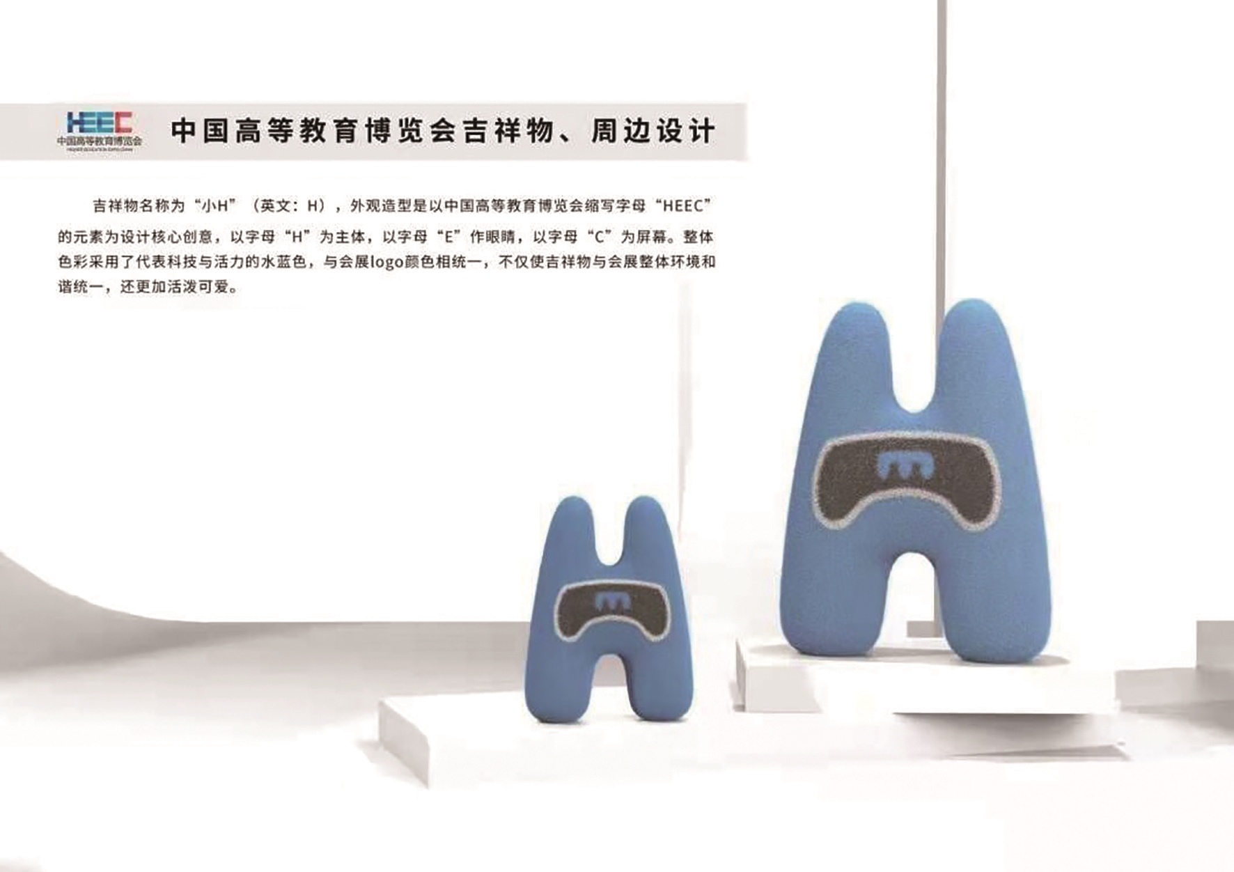 此时距离截稿时间不到半个月,学生们有点畏难,王文斌鼓励大家“好的想法不需要太久,有了想法就更要赶紧做,不要拖”。因时间短、任务紧,还要兼顾其他课程,马佳鑫组决定,简化设计,这样不仅设计工作量较小,万一中了,后期制作起来也方便。于是,她们以中国高等教育博览会的英文缩写字母“HEEC”的首字母为灵感,设计出吉祥物“小H”,最后在截稿时间前两天顺利提交。